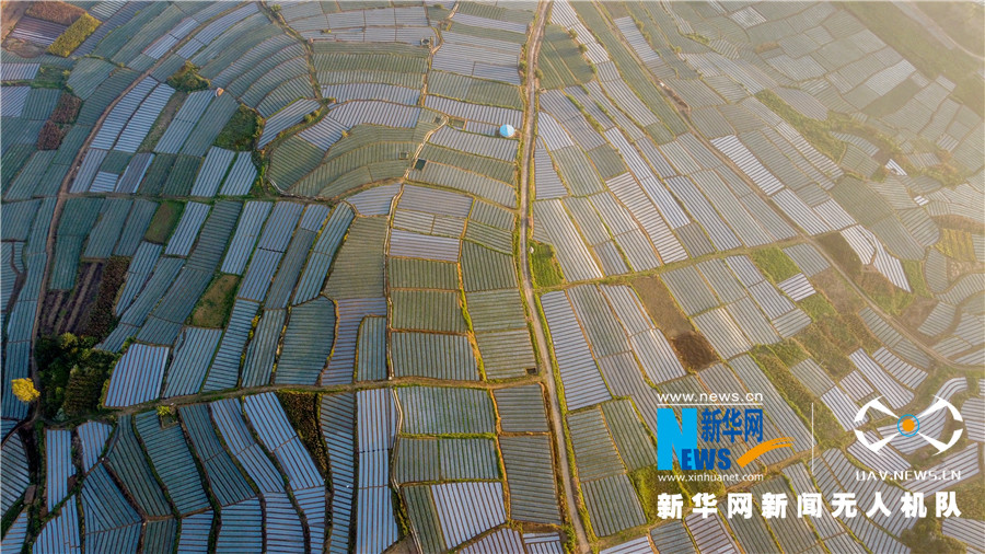 ????這是近日在甘肅省定西市通渭縣華家嶺鎮航拍的霧凇美景。新華網發 (張賽 攝)